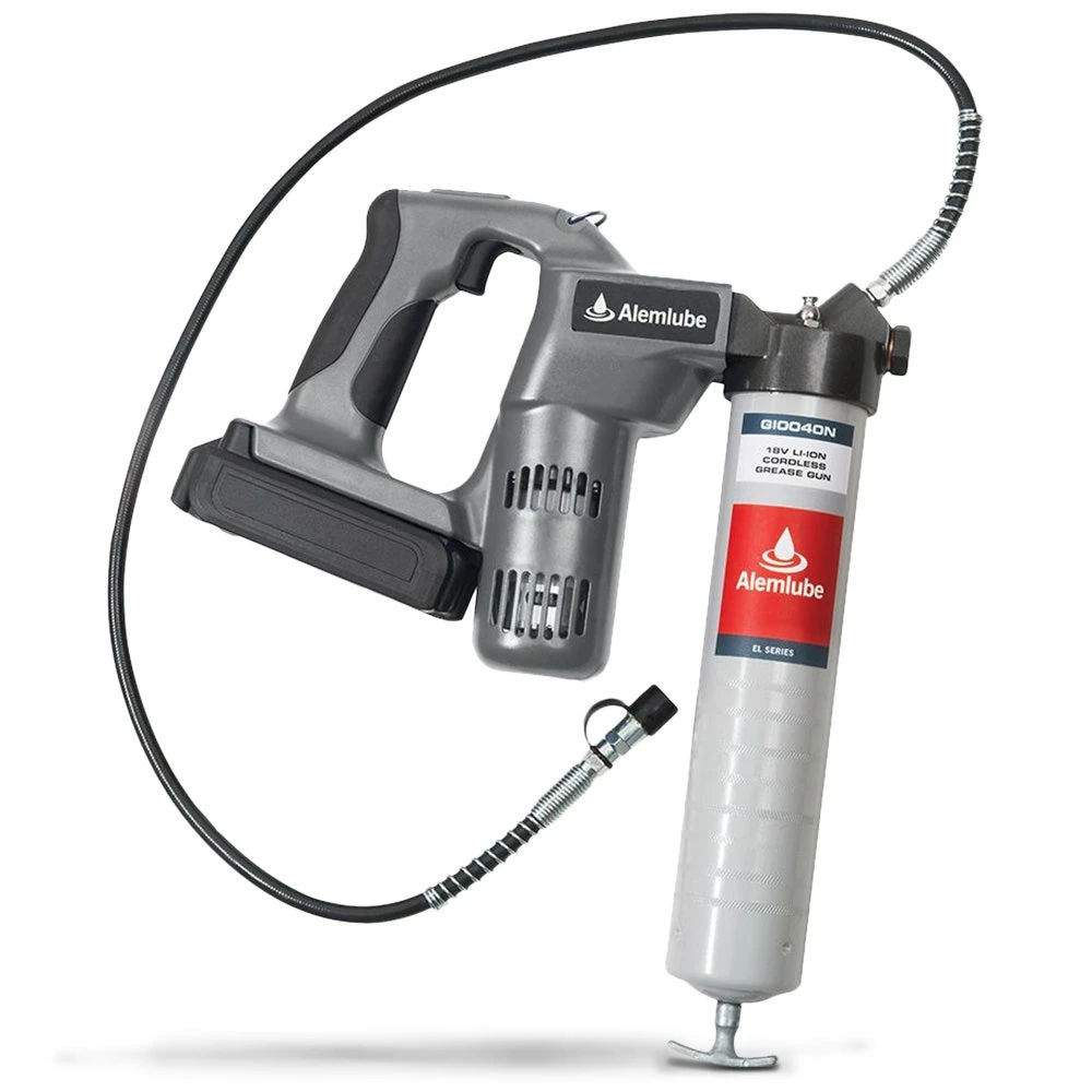 The Alemlube EL Series G10040N 18V Lithium-ion cordless grease gun takes the hard work out of greasing. A must for any busy workshop, the Alemlube EL Series G10040N can dispense up to twelve 450 gram cartridges of grease using the 3000 mAh battery before recharging or battery changeover.