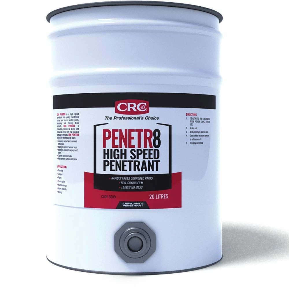 CRC Penetr8 is an industrial strength, low viscosity lubricant and penetrant designed to quickly loosen and free seized, bound or frozen fasteners. CRC Penetr8 quickly permeates rust, scale, gum, grease and corrosion with a low surface tension formula that creeps into cracks, seams, threads and joints with greater efficiency. CRC Penetr8 eases the disassembly of plant machinery, tools and equipment for routine maintenance and emergency repairs. Its super penetrating formula outperforms the competition in penetration, speed and corrosion resistance as verified by independent tests.