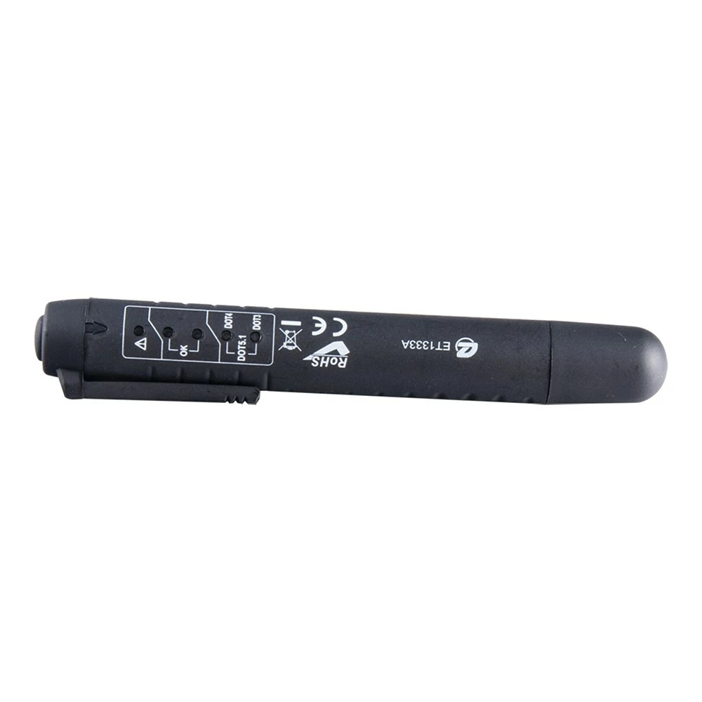 This pen style tool tests the percentage of water in brake fluid, and tests all essential profiles for modern brake fluids. Please refer to the DOWNLOAD tab for a detailed instruction sheet.