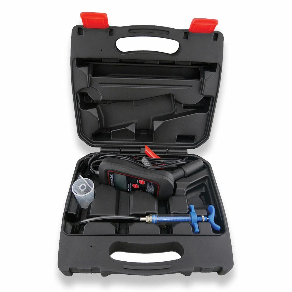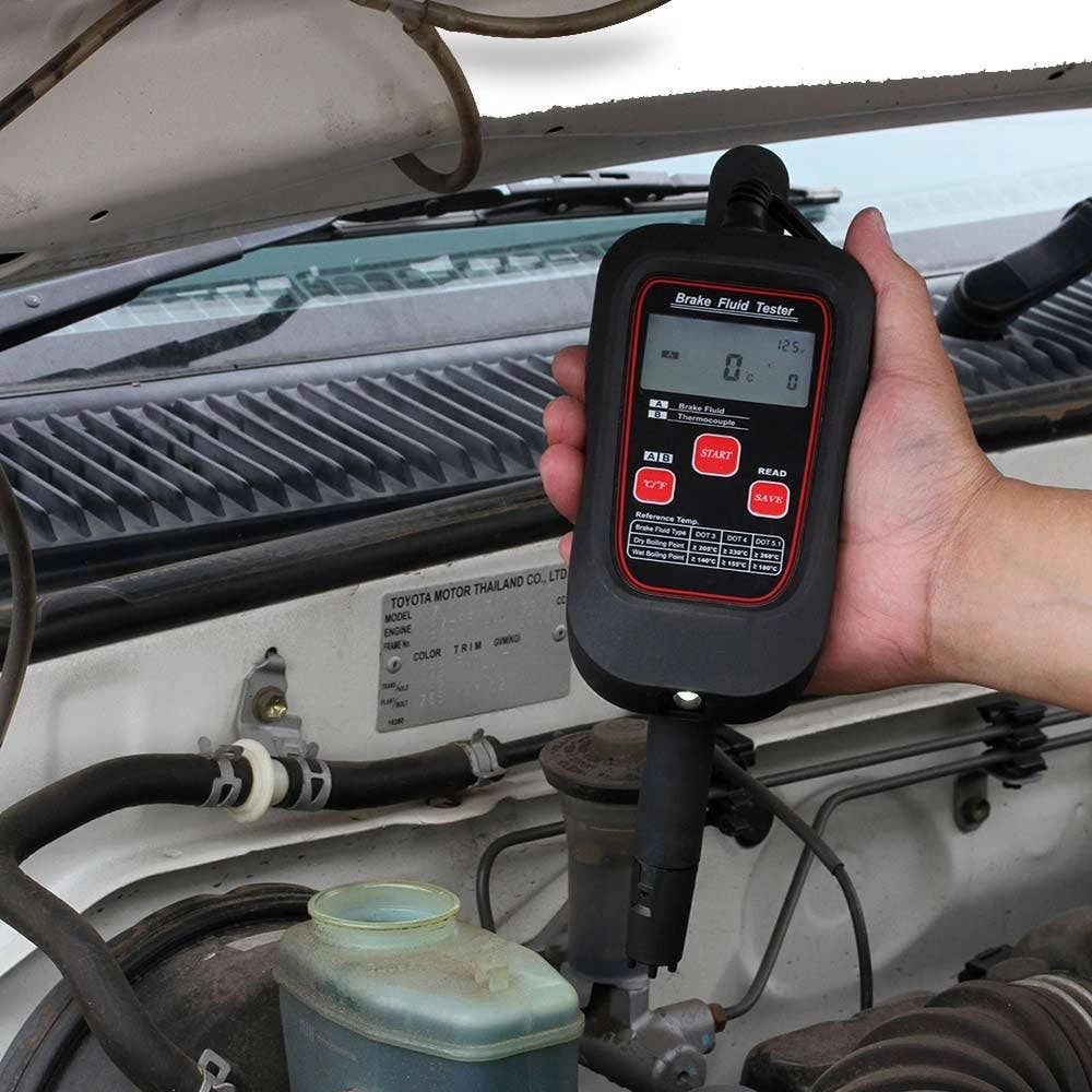 - A professional brake fluid tester measures the boiling point of the brake fluid