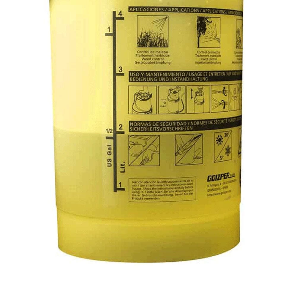 Minimum effort ergonomic handle; Large filter with viton seals in lance handle and rustproof spring; Easy to use pressurisation/carrying handle; Safety valve with automatic release of excess pressure; Polypropylene tank, lightweight and very strong; Connector for accessories; Adjustable conical nozzle; Fibreglass lance.